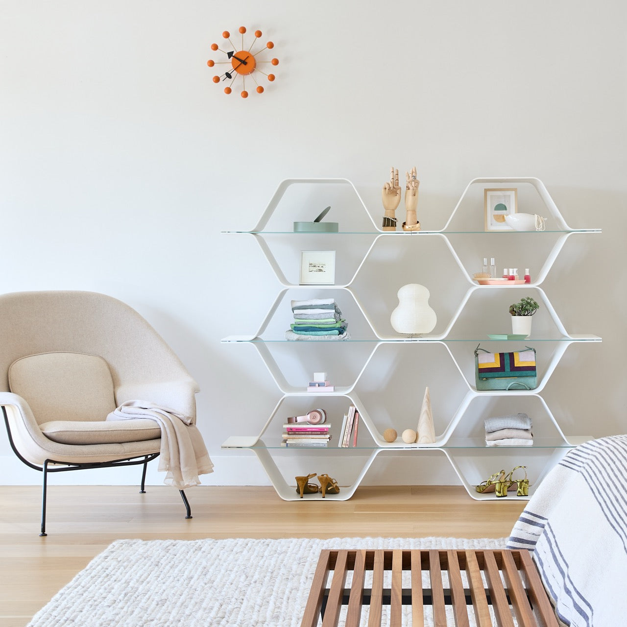 The Honeycomb Shelf brings a sculptural touch to any room. Crafted with precision and designed for versatility, its geometric structure adds depth and balance to modern interiors. Whether you’re displaying books, art, or daily essentials, every piece finds its perfect place.