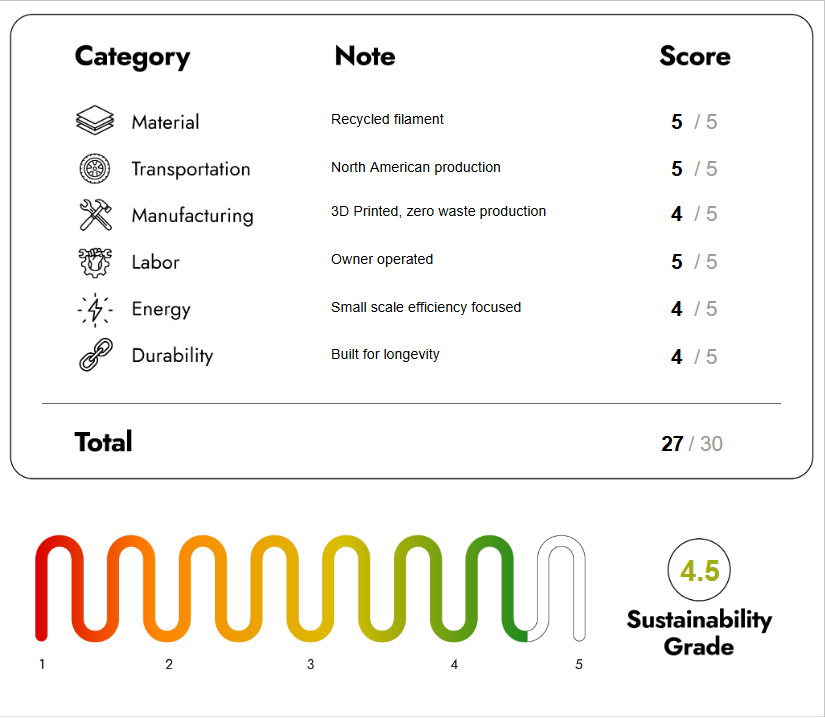All of our products are 3D printed in Canada using plant-based materials made from fermented organic matter such as sugarcane, corn starch and tree fiber. Any scraps and misprints are melted down and turned back into new products, making our process entirely waste free!